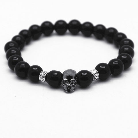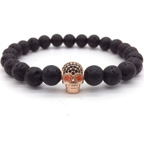 Black Beads Natural Stones Skull Bracelet For Women Lava Stone Beads Men Bracelet Black Lava Beads Bracelets Pulseras Mujer