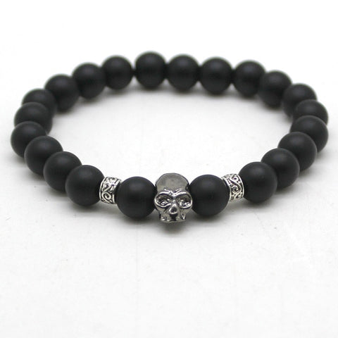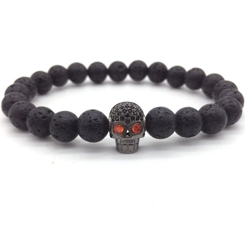 NAIQUBE Skull Men Bracelets 8mm Lava Beads Classic Simple Stone Beads Charm Bracelet For Men Jewelry Gift